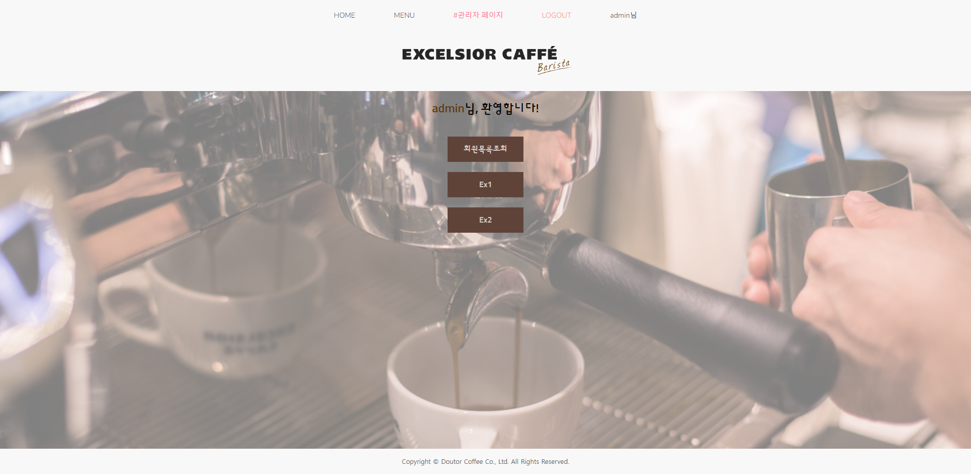 일단 관리자로 로그인하면 바로 연결되는 페이지엔 관리자 권한으로 할 수 있는 여러 페이지가 있겠지만 다른건 지금 중요한게 아니기 때문에 회원목록조회 버튼만 구현하고 나머지는 예시로 버튼만 만들어 두었다.