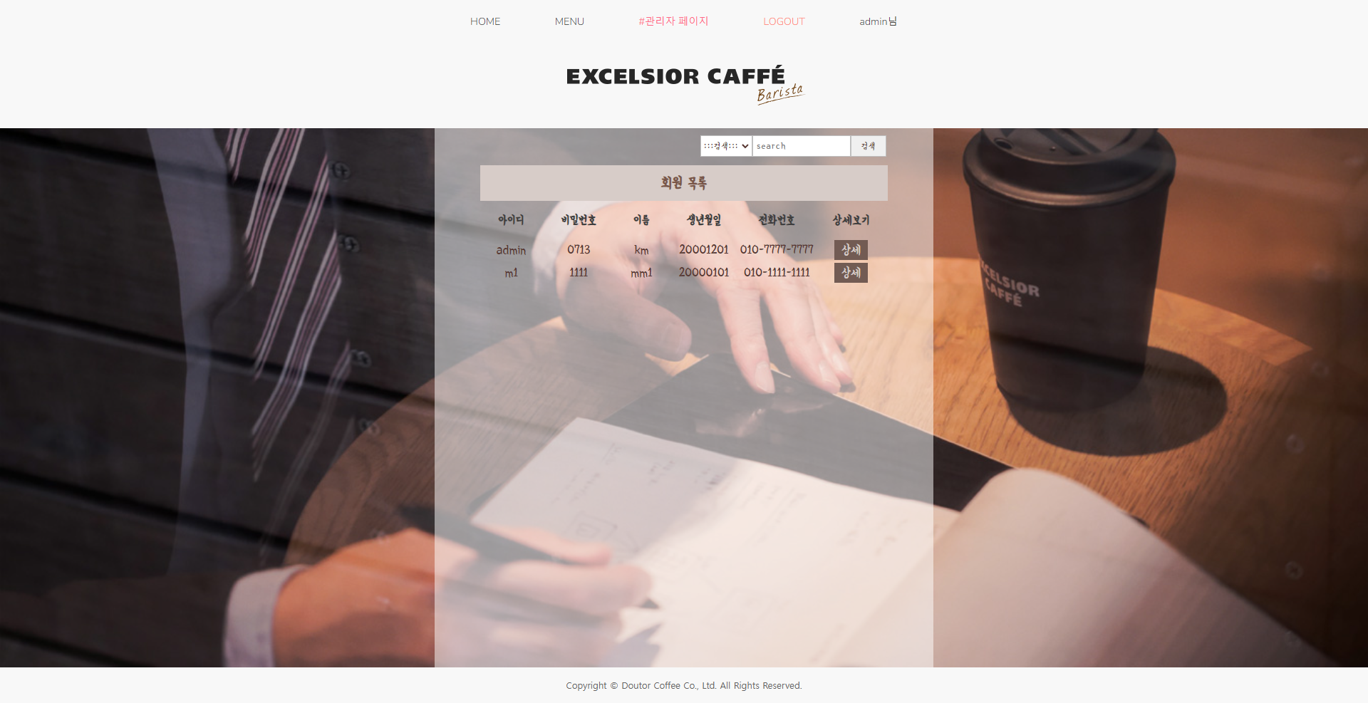 회원목록조회를 누르면 이렇게 회원목록을 출력한다.